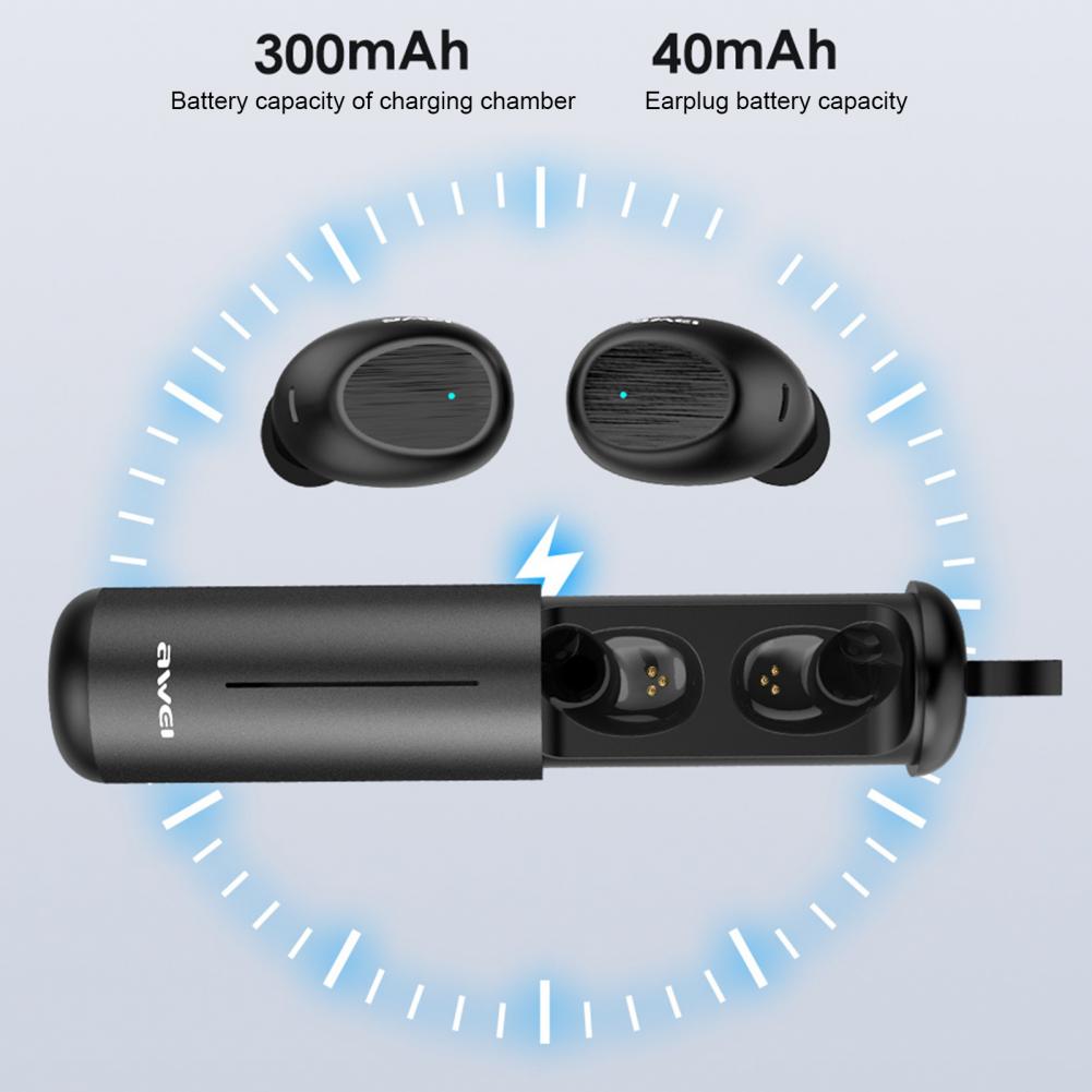 AWEI T55 Bluetooth Earphone TWS 5.0 IPX4 Waterproof Touch Control Mini Wireless Earbuds for Sports 10m Remote HD Signal With Mic