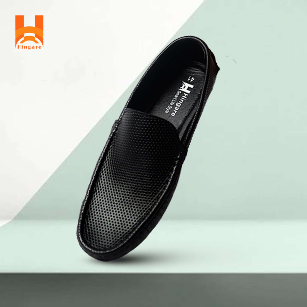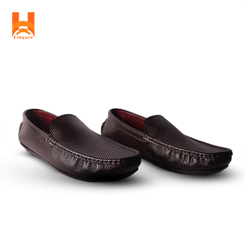 Hingare Genuine Leather Men's Shoes Textured Print Casual Slip On Loafers