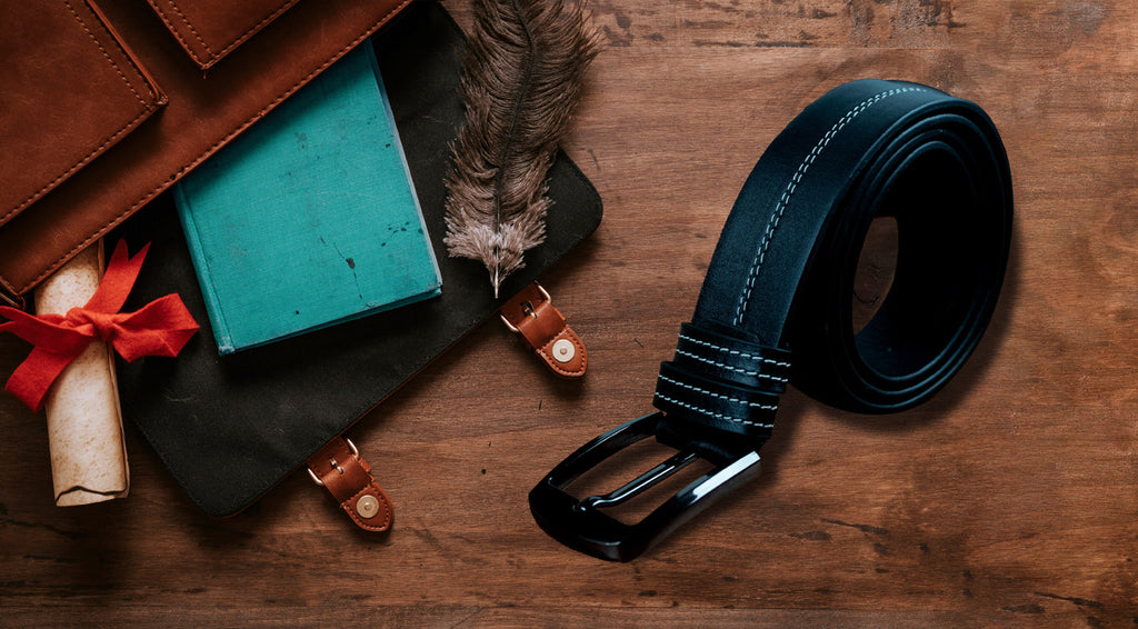 Hingare Men's Double Stitching Leather Belt 100% Genuine Leather Belt (Enclosed in Gift Box)