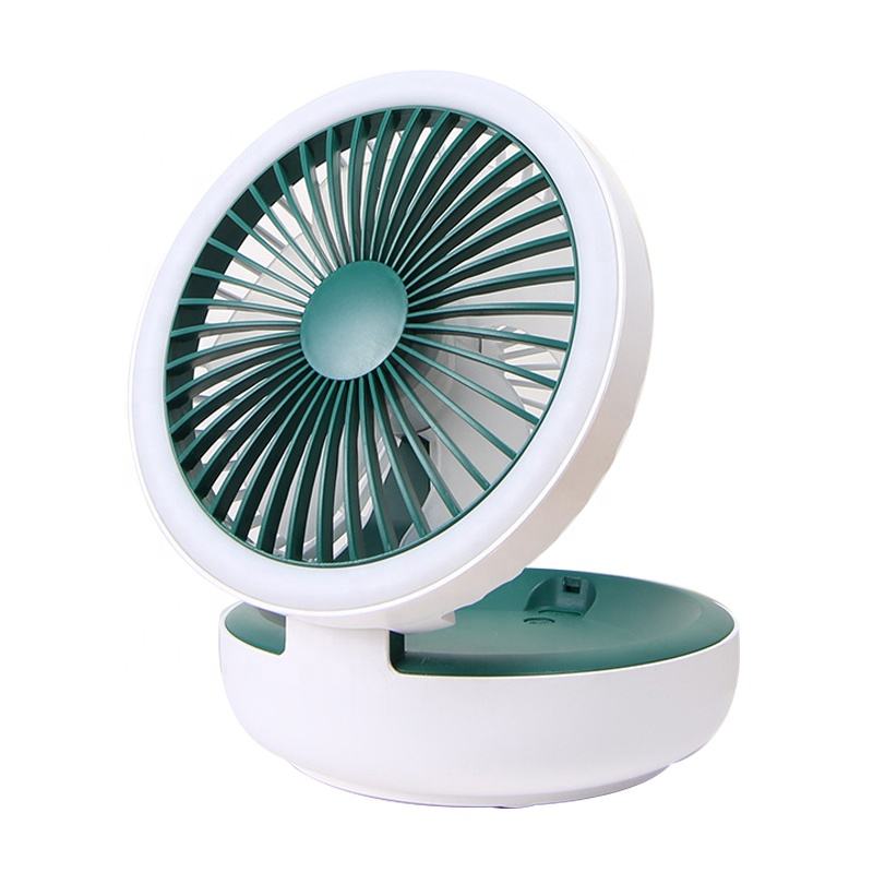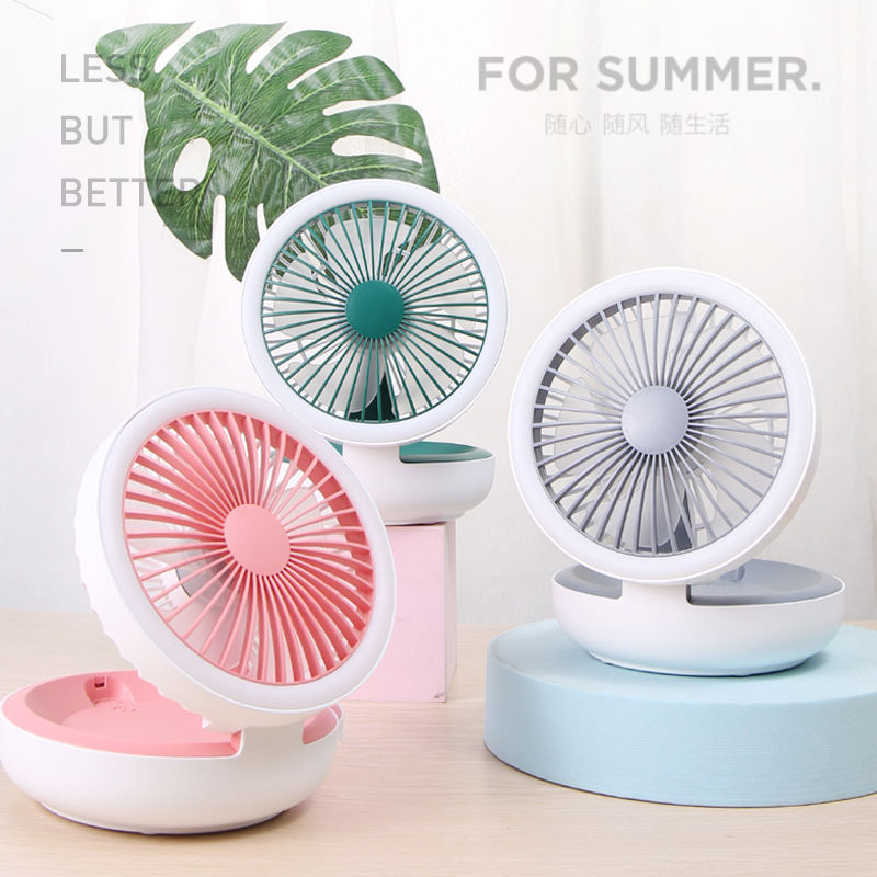Desktop night light mini fan for student dormitory and office use - Multi-angle fordable USB charging fan - It's Desktop Fan also can be Wall Fan - Two night light lever adjustable - The shape of portable rechargeable fan is very fresh, cute, mini and light, which has storage wind. Summer is hot, you will like the summer with our fan. Unique design, creative style, made of high-quality ABS and silicone, has a solid structure and pressure-resistant. Can be used as a desktop air fan or handheld fan. Rechargeable battery fan with adjustable 3 wind speed. Build-in Rechargeable 1200mAh Li-ion battery, can be charged by USB charger, computer, power bank. Handheld portable fan, light-weight and handle design, convenient to carry with and can be clipped. Put it inside in your backpack, great for traveling in hot weather, you can take it to anywhere.