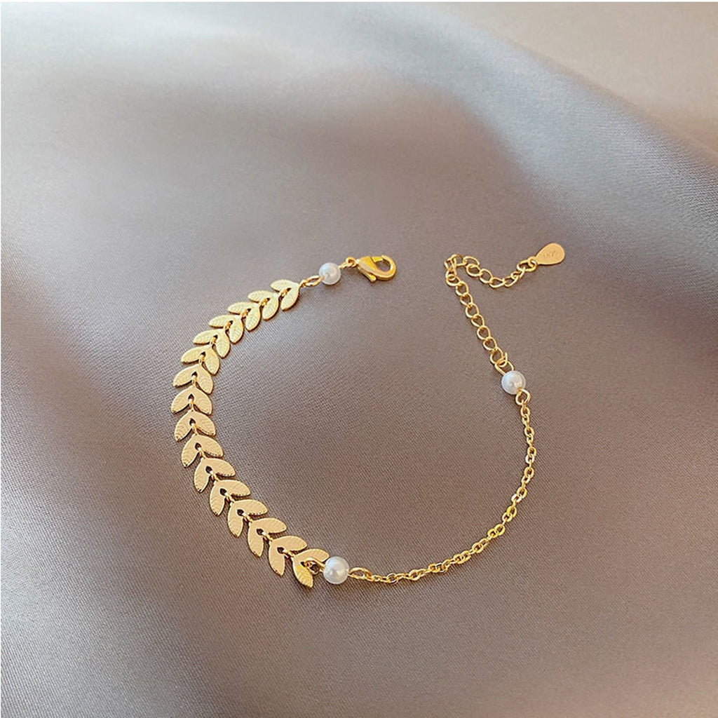 Gold plated leaf shape jewellery include earrings, bracelet and necklace
