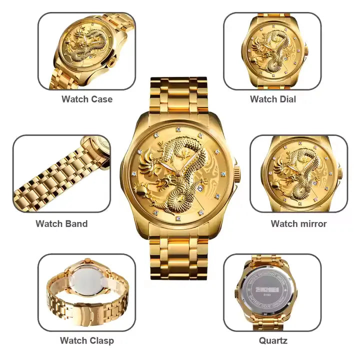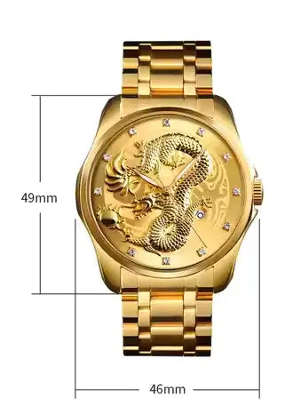 YOLAKO Brand Alloy Steel Men’s Dragon Watch - Golden Color